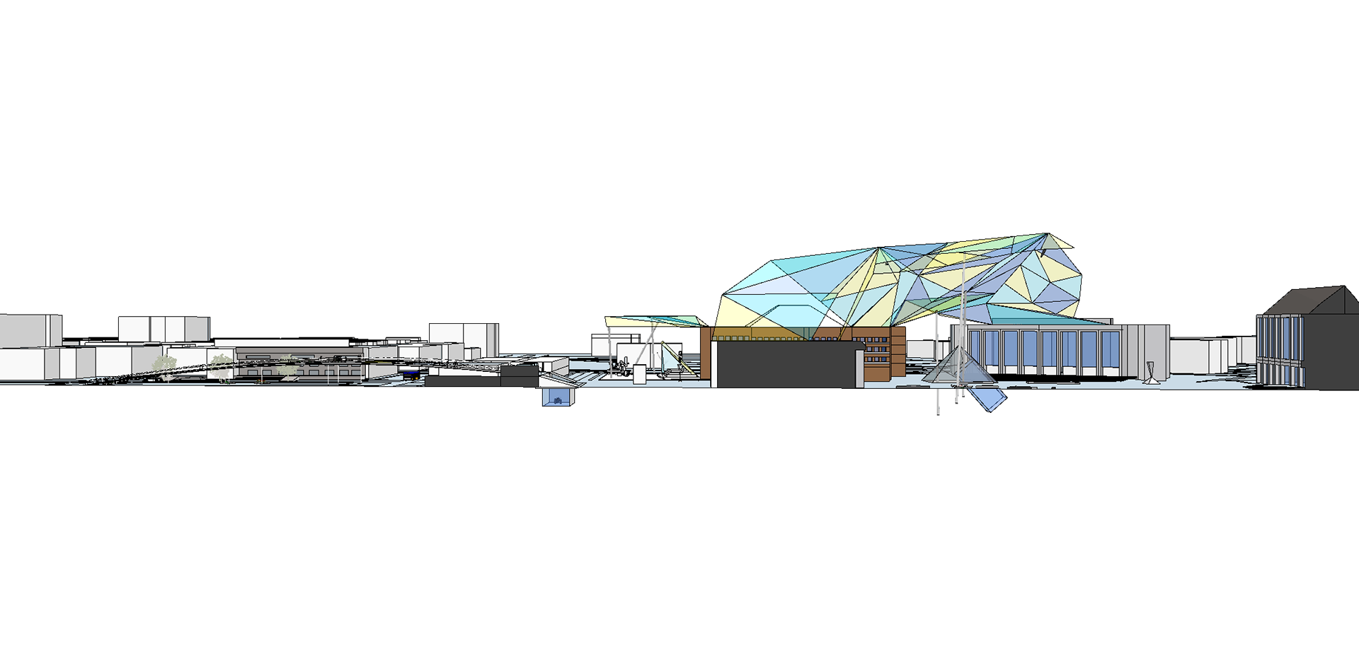 This design intervention was the product of an interdisciplinary design competition challenging students to redesign the University of Washington’s iconic Red Square. I worked with three landscape architects to develop a compelling design that responded to the history of the square while also boldly propelling it forward as a modern icon of the campus. I contributed the SketchUp model that was the foundation for our renderings, site plans, and section illustrations as well as producing the the concept sketches exploring three levels of enclosure and the "user experience" render.